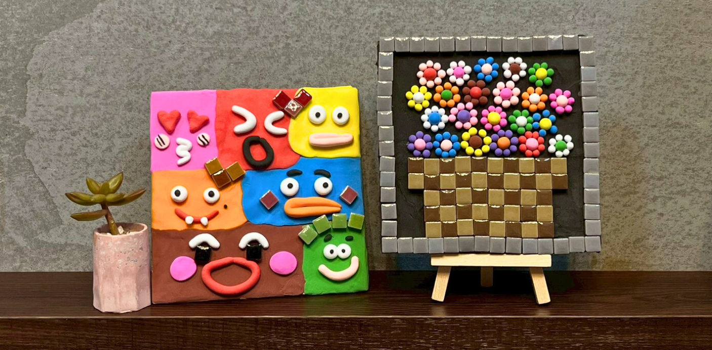 小小藝術家可以選擇 馬賽克拼貼DIY、交趾陶陶板彩繪DIY、馬賽克黏土創作板DIY 三選一。建議國小孩童體驗馬賽克拼貼或陶板彩繪DIY。建議幼兒園體驗馬賽克黏土創作板DIY