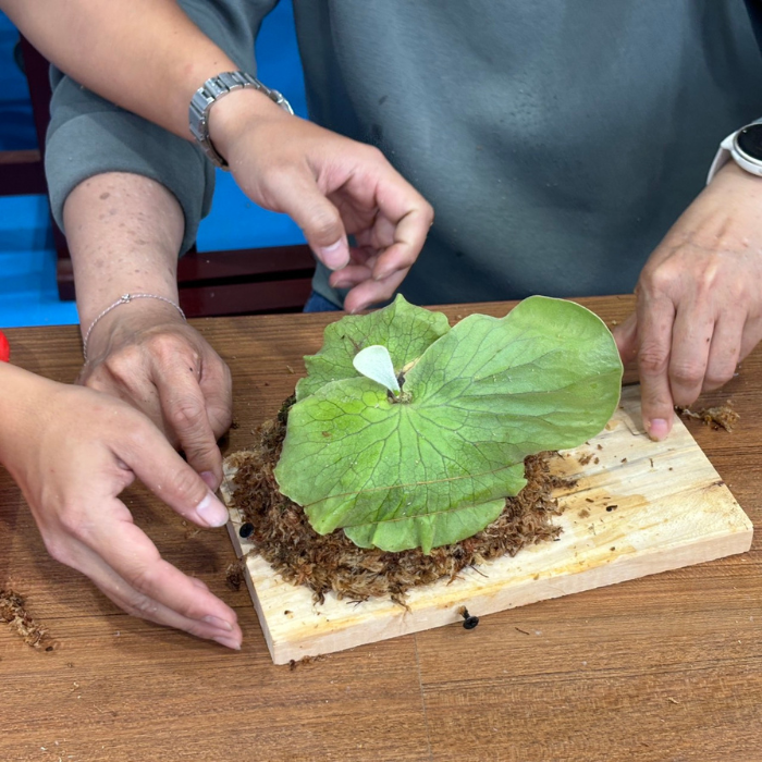 - 技巧示範:講解上板步驟,包括芽點朝上定位、水苔包裹根部、綁紮固定